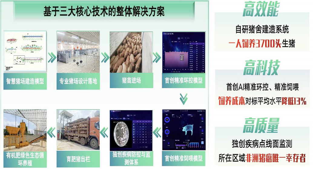 星荷AI聪慧猪场年出栏5万头生猪总投资约1。2亿元,建成25000㎡聪慧型全密闭“互联网+物联网”聪慧型育肥猪场,猪场设想方案从我国华南地域天气特点出发,连系IOWA STATE UNIVERSITY Ken Stalder传授的《Facility Design for Pig Farm buildings》猪场的基准参数,猪舍投产利用规格可达高规格先辈猪舍的尺度。公司取科大讯飞股份无限公司、中国挪动通信集团无限公司贵港分公司合做,打制全方位智能化育肥养殖星荷AI聪慧系统,对育肥猪的环控、饲喂、疫病、预警、运营办理等进行全方位办理,成立基于本土的最佳饲喂模子、最佳环控模子,实现可逃溯、可视化的精细化智能办理。实现物联网聪慧猪场设想、扶植、运营、养殖、系统搭建的全过程尺度化、消息化成立,并验证物联网聪慧猪场的贸易模式可行性。公司采用代养殖运营模式,即合做方供给断奶生猪、饲料及疫苗等出产物资,公司供给智能猪舍、自有养殖手艺进行代养殖办事,最终的公司营收以豢养成就挂钩。集成物联网、大数据、AI人工智能等先辈手艺,采集链接所有智能化数据,实现立即数据领受取深度阐发,提高决策的科学性和精确性,鞭策养殖业的智能化升级。同时取财政系统慎密连系,对养殖出产成本进行切确节制取阐发,构成一套尺度化、智能化、现代化的育肥猪聪慧养殖方案。星荷聪慧猪场养殖密度将低于0。85㎡/头,人均豢养量高于4000头,成活率高于97%,豢养时间缩短至158天,可间接降低每头猪的豢养成本至多220元,提高猪只发展速度17%,削减饲料用量14%,全体豢养成本对标国内平均程度降低13%,处理猪只养殖成本居高不下的难题。立异“公司+村委会+农户”模式,公司为农户供给养殖场地、猪崽、饲料、药品以及养殖手艺,而农户则担任日常豢养。公司同一担任发卖,从而处理农户正在手艺、资金和发卖方面碰到的难题。合用于有不变收集信号前提下,扶植高尺度工艺的3000头存栏规模猪舍,投入安拆AI智能化设备设备,人均豢养可提拔1000头,能提高30%以上养殖效率,降低5—10%的办理和出产成本。